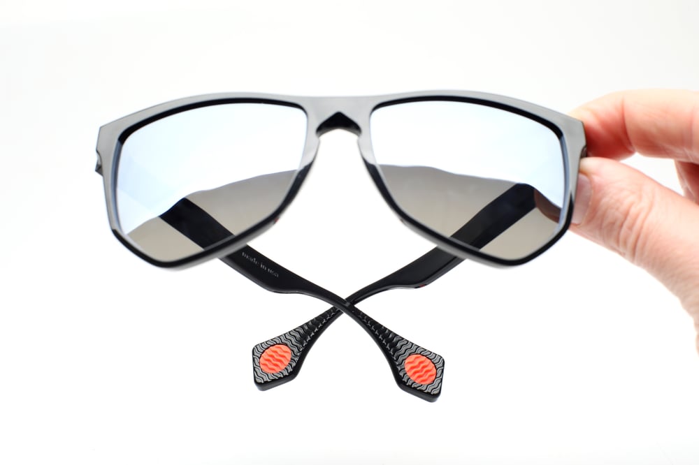 These ultra-high optical clarity Nylon lenses feature a subtle black mirror coating with a polarized filter and gradient tint (Category 3/3 Gradient, VLT: 9%), allowing for a clearer view of your deck and the road on the lower portion of the lens while still maintaining a high-level of eye protection from the sun. Our anti-reflective coatings prevent glare on the inside surface of the lens while high-tech oleophobic coatings reduce smudging from oils, liquids, and sweat. Flexible and durable, our frame material is a hypoallergenic bio-based nylon polymer with a high-resistance to chemicals (like sunscreen), making them a perfect fit for all kinds of activities – whether you’re riding, running, or mowing the lawn.